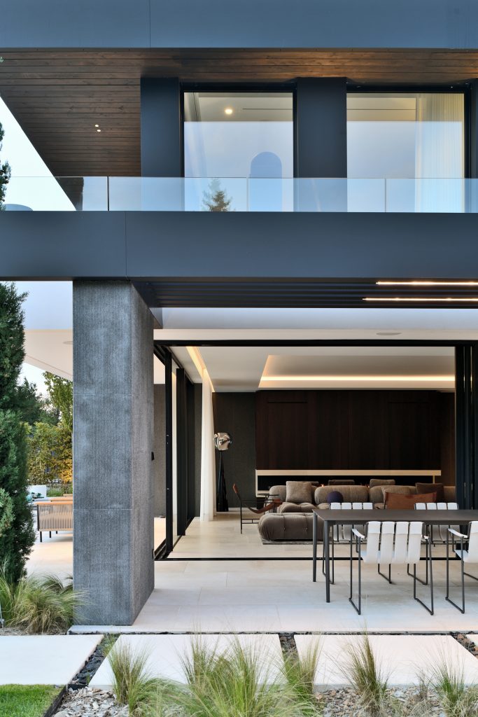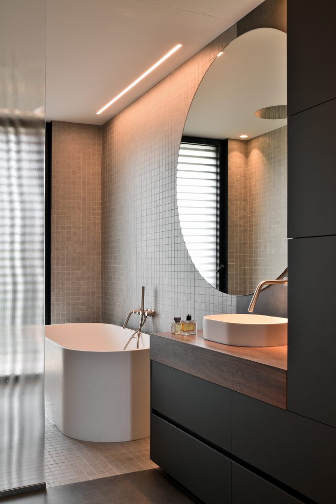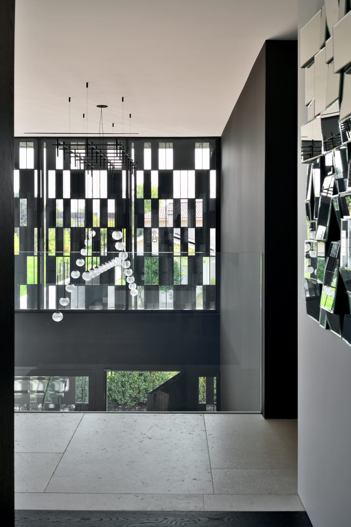 Cette villa d’architecte près de Lyon se distingue également par son exigence technique : menuiseries invisibles, joints millimétrés, intégrations discrètes d’éléments fonctionnels. Chaque détail reflète un travail artisanal de précision et une conception haut de gamme.